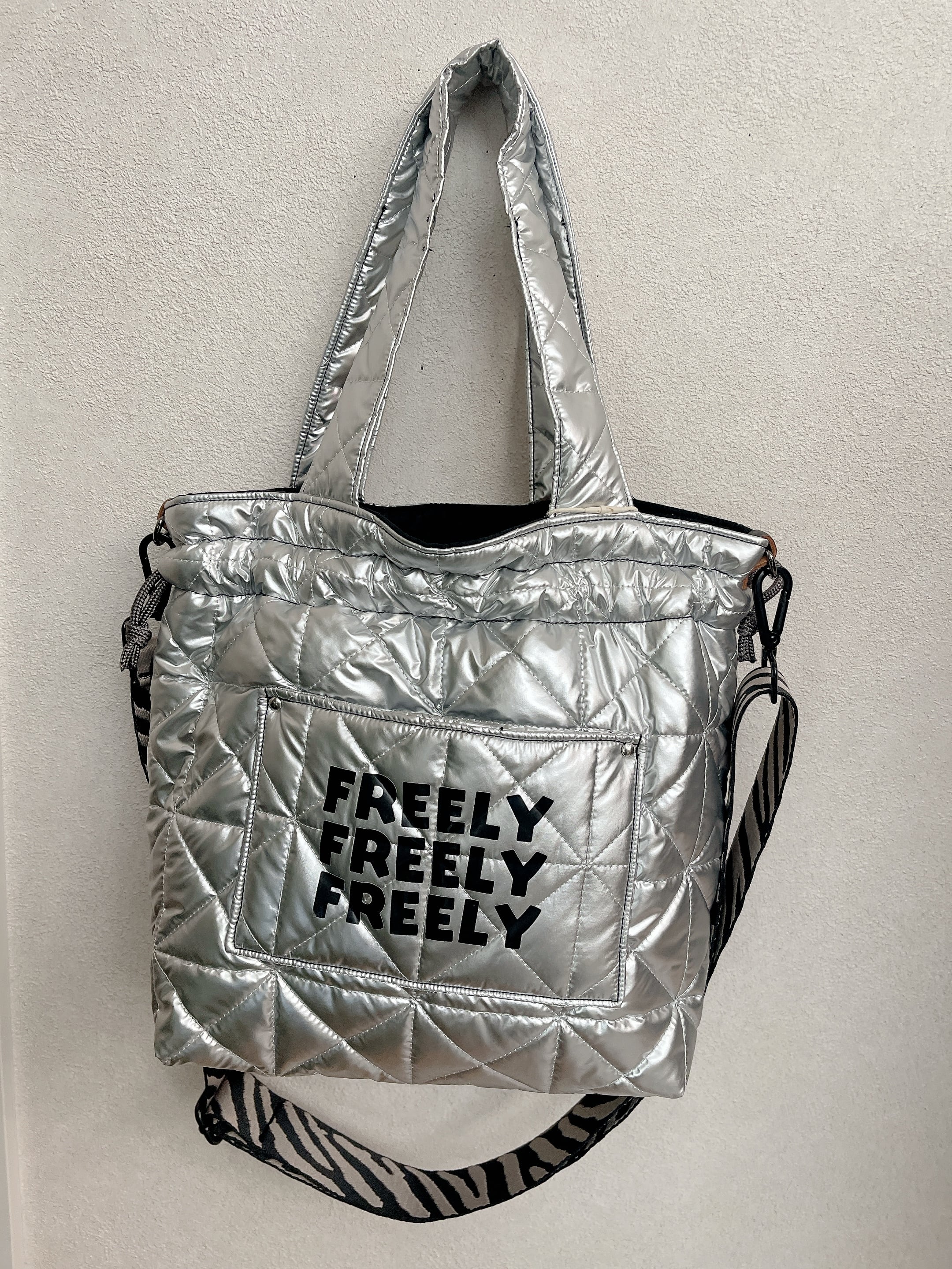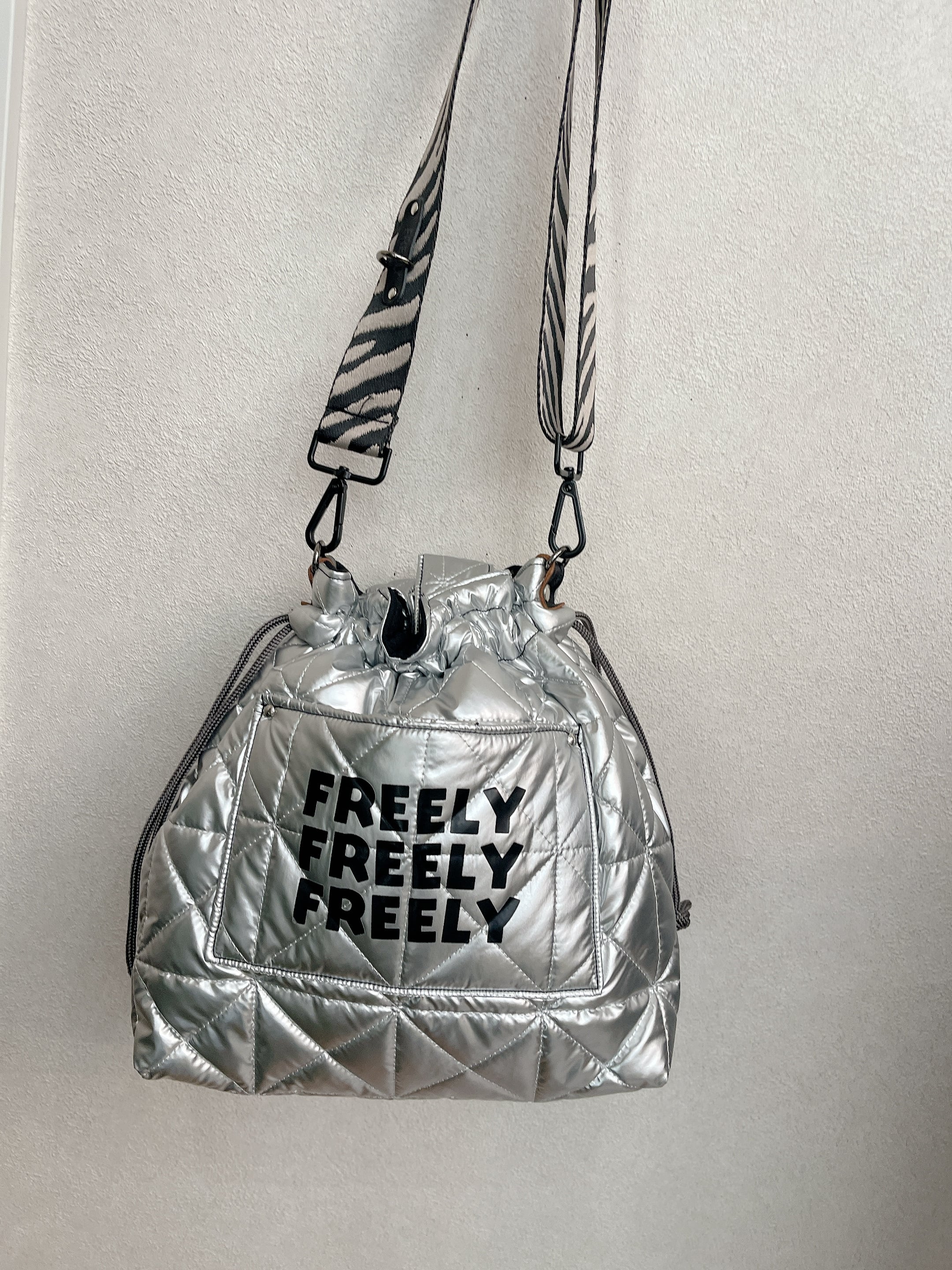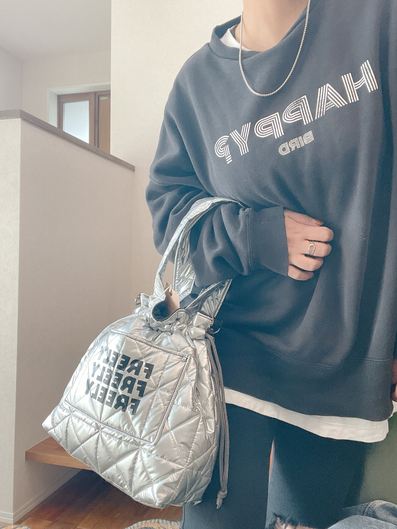 大きめ巾着で大容量冬にぴったりな人気シルバーキルティング