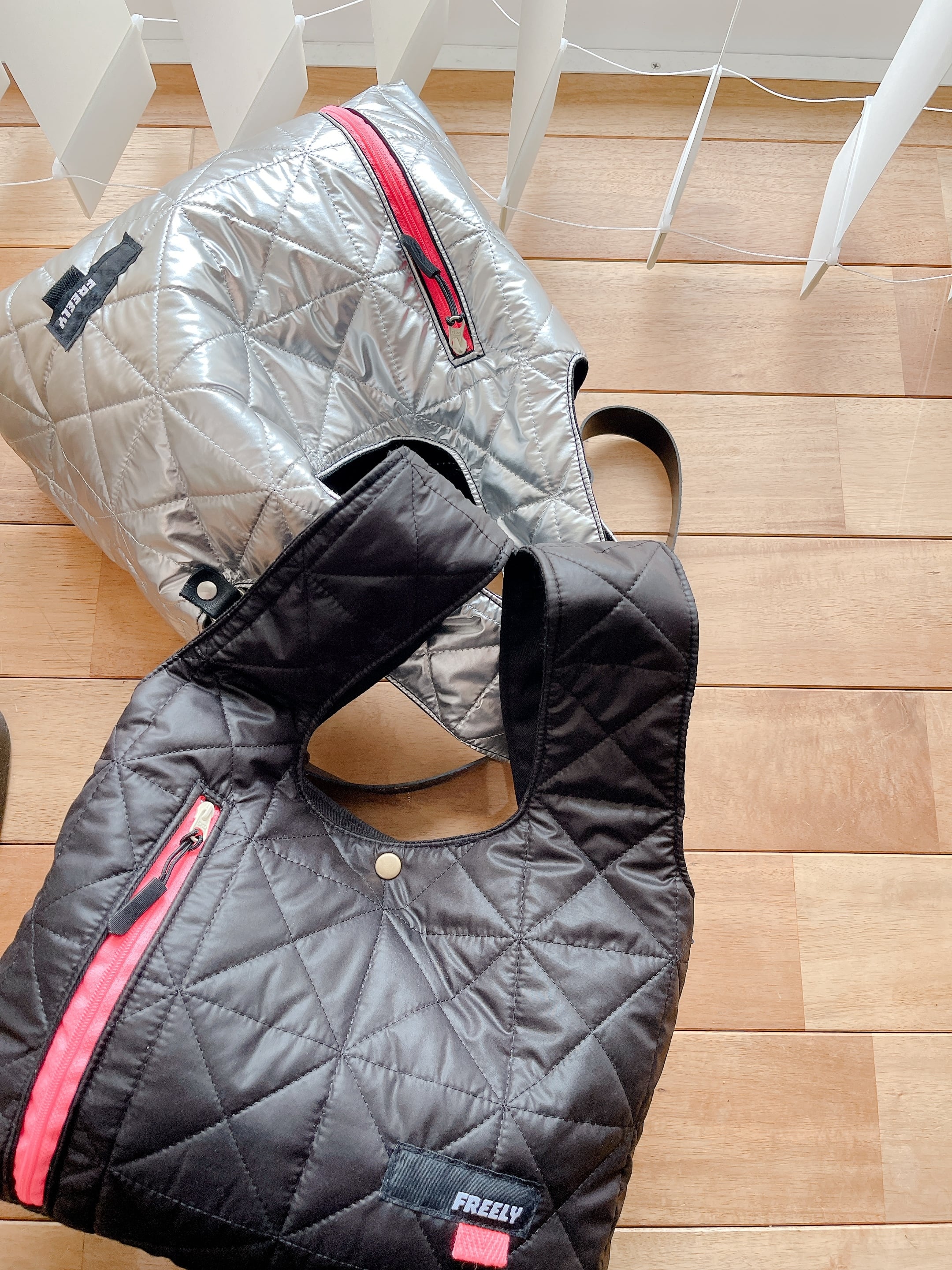 あらゆるところにポケットを配置したレジ袋型バッグです。見た目以上の大容量を誇り、必要なものをしっかり収納できます。そして、持ち運びの自由度が高く、手で持つだけでなく、付属の延長ショルダーを使うことで肩掛けスタイルにも対応しています。
